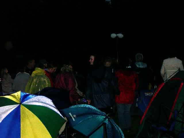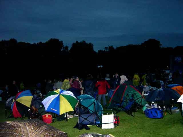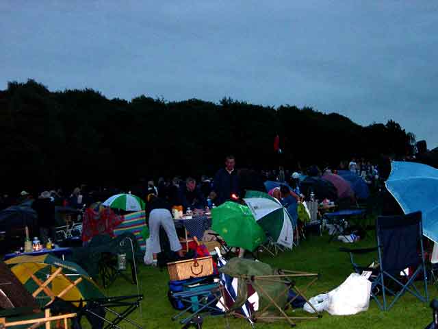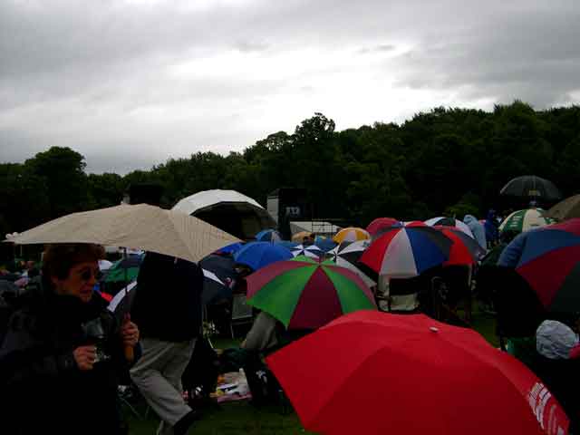 Raining again, but the brollies are keeping people's picnics dry instead of the people themselves.