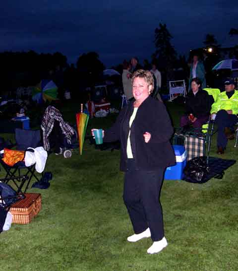 Of course I didn't know this flattering photo would end up here, but Dave knows I don't know how to delete it. I look like the Michelin tyre man because at this point I have on a thermal underwear top, a pullover jumper, a cardigan, and 2 jackets -- lovely. If only Tom Jones could see me, I would throw my knickers on the stage, but I can't seem to find them under all the other clothing, It was great fun. |